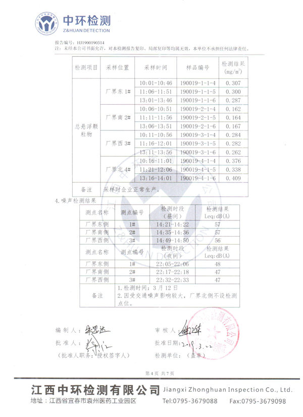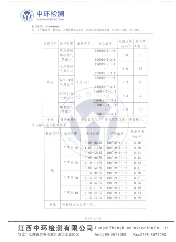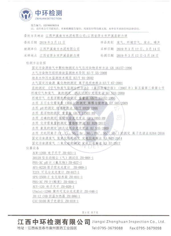 江西芦溪南方水泥有限公司2019年一季度环境检测报告