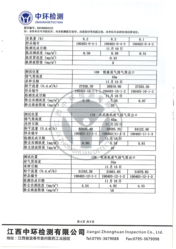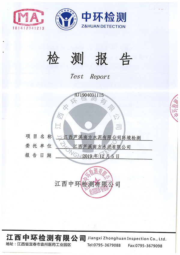 江西芦溪南方水泥有限公司2019年四季度环境检测报告