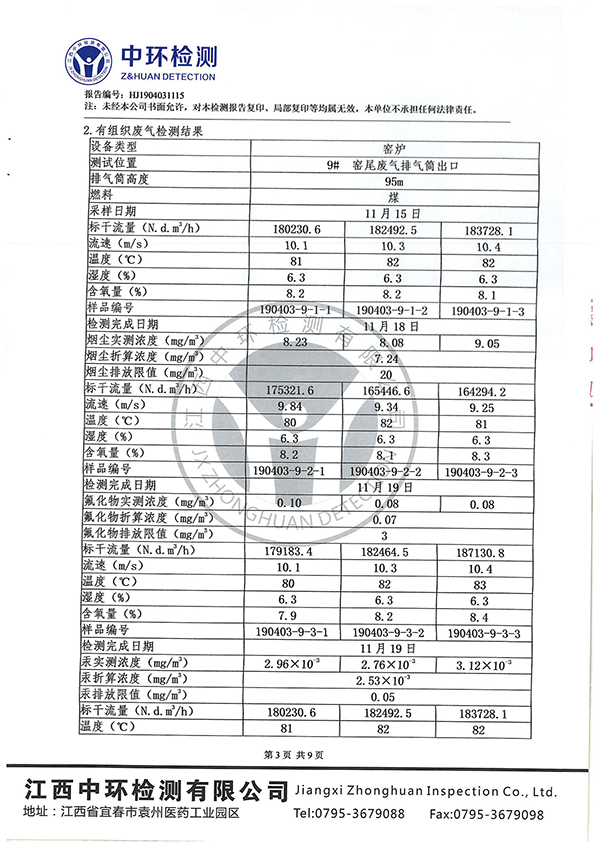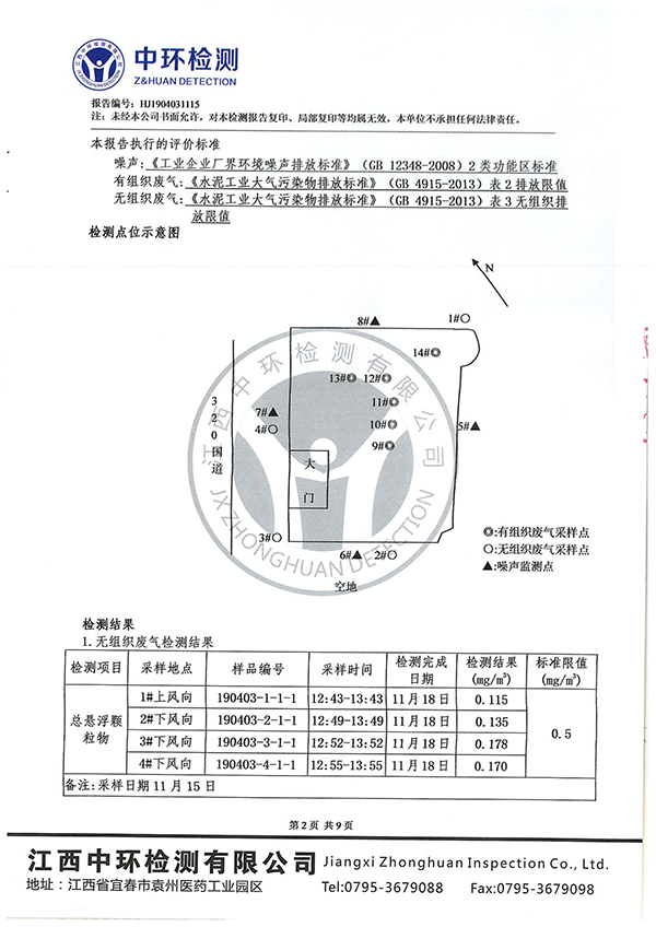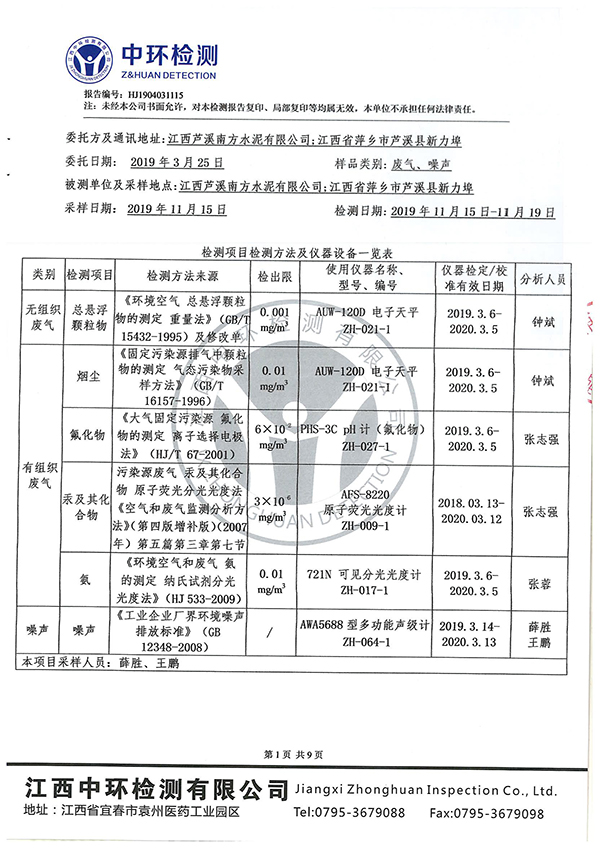 江西芦溪南方水泥有限公司2019年三季度环境检测报告