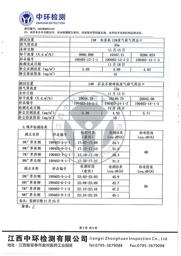 江西芦溪南方水泥有限公司2020年五月份环境检测报告
